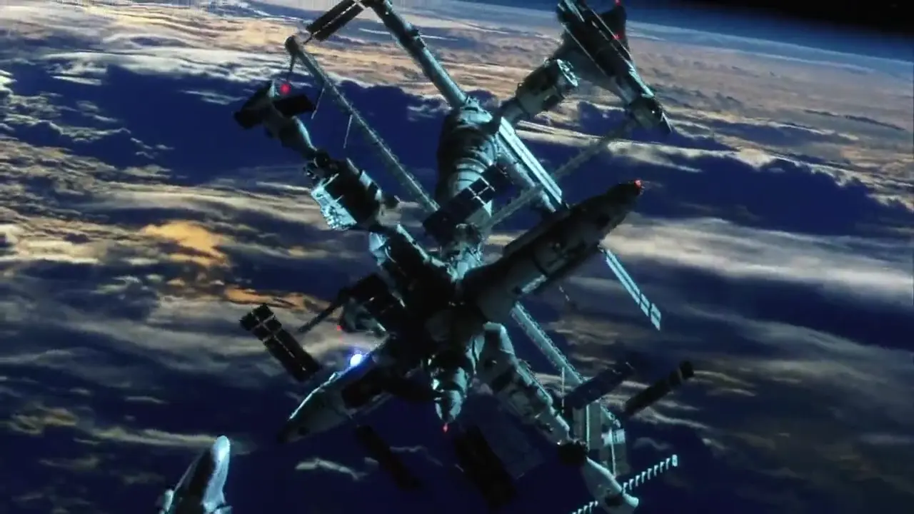 The "Russian space station" is also has a funny lack of realism. The station fires its thrusters to simulate gravity, however they do this before docking so the shuttles would have had a much harder time safely matching rotation. The station itself is fundamentally the wrong shape for supporting acceleration induced gravity. Any axis you spin the station on wouldn't generate significant simulated gravity let alone match the movements of the characters inside that station as they're depicted on screen.