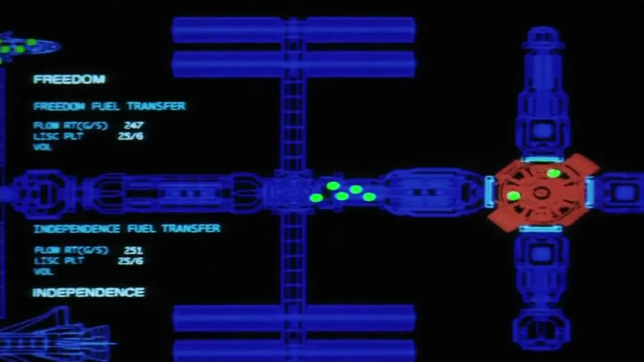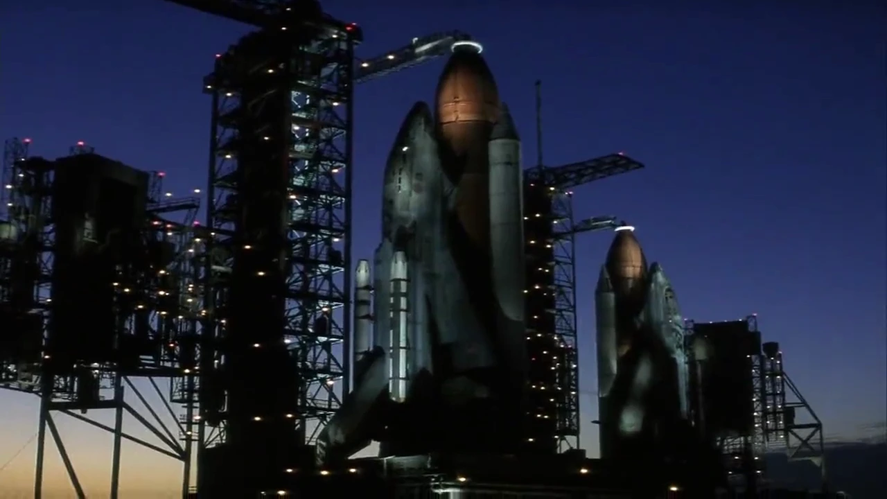 The U.S Air Force shuttles are also an interesting point. The two shuttle; Freedom and Independence are weirdly launched simultaneously. While it makes for a cool shot...kind of, it also incredible dangerous. If almost anything had gone wrong before or during launch both craft would have been in danger.