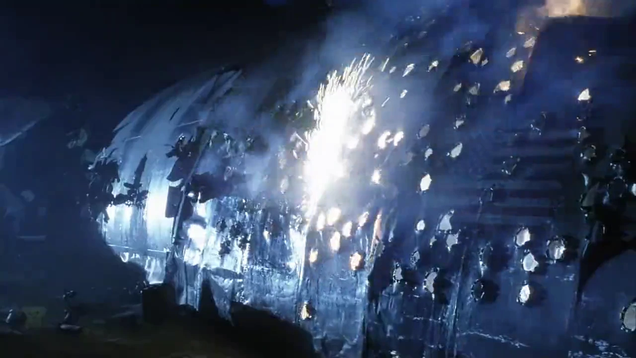 The shuttle are said to be made with a "titanium alloy, impenetrable skin" which is like a bad metallurgy joke. Of the long list of titanium alloys, impenetrable isn't in their repertoire. Titanium is known for its light weight in composites but also its fragility, Titanium is relatively brittle as a metal which is why we have shots like this in the film;
