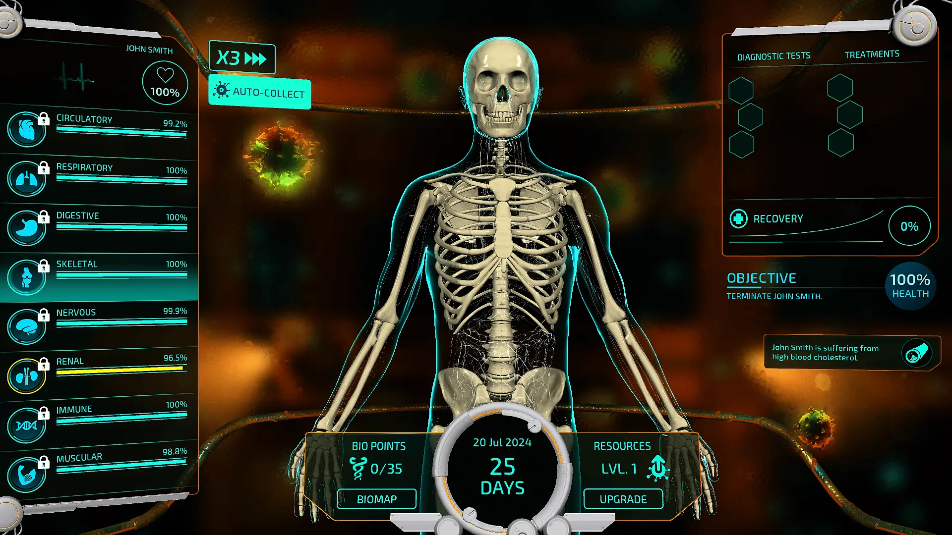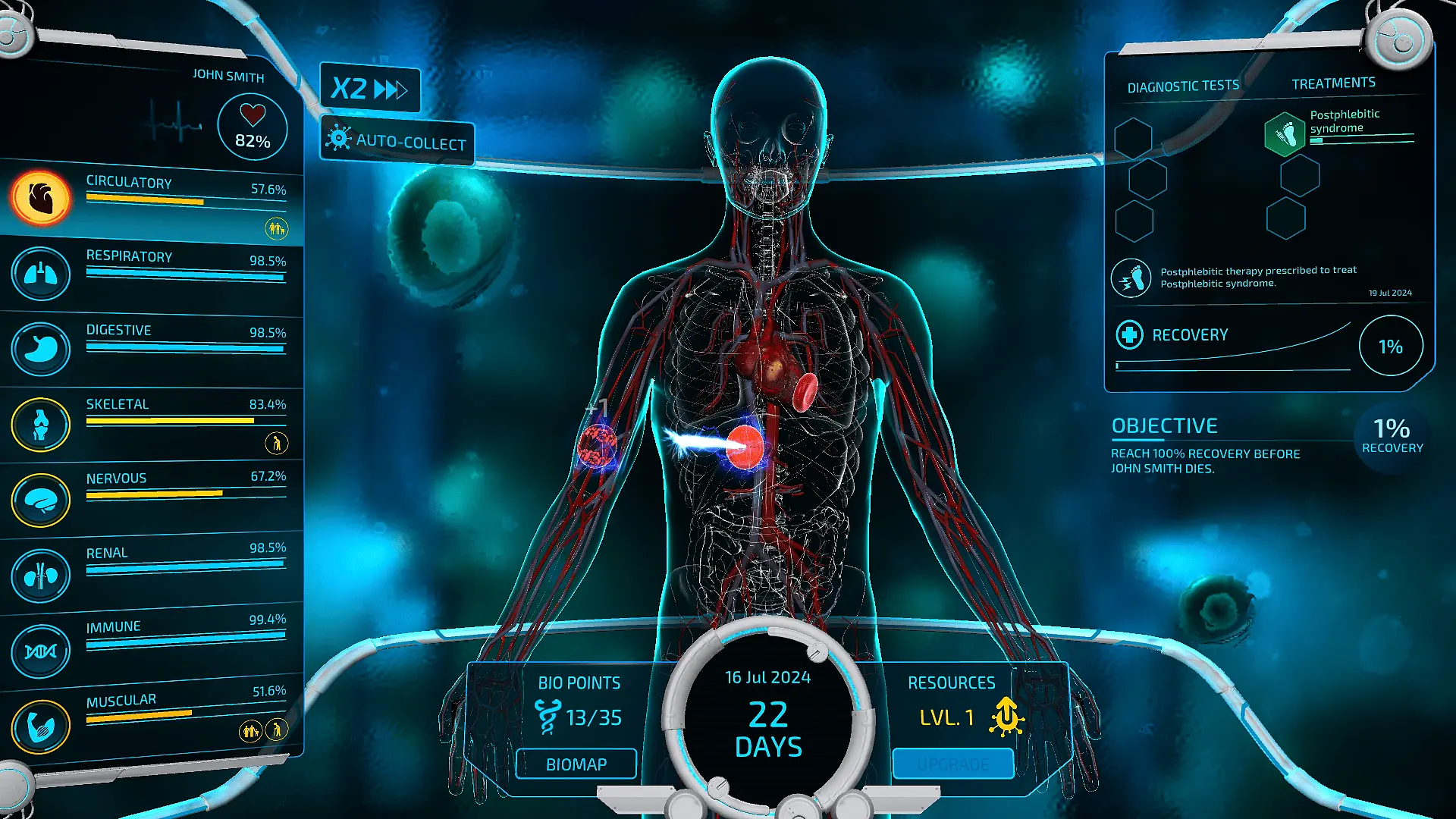 Navigating body systems and deploying treatments or symptoms is streamlined enough for quick decision-making, yet deep enough to require tactical focus. Visuals are stylized—medical panels, system overlays, glitch effects—that show bodily deterioration graphically when a patient fails. The aesthetic of clinical realism, with the 3D model of the patient(s) are detailed and dynamic and providing eye candy while ratcheting up tension. There are layers for each of the major system of the human body and they all move and flex with the patient. On top of that the game visualizes the level of damage each system has in real time.